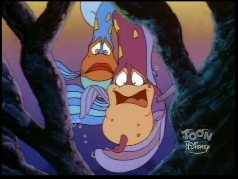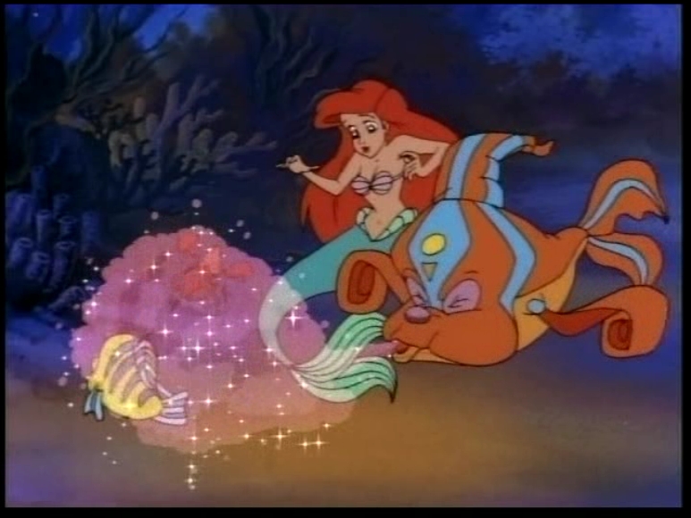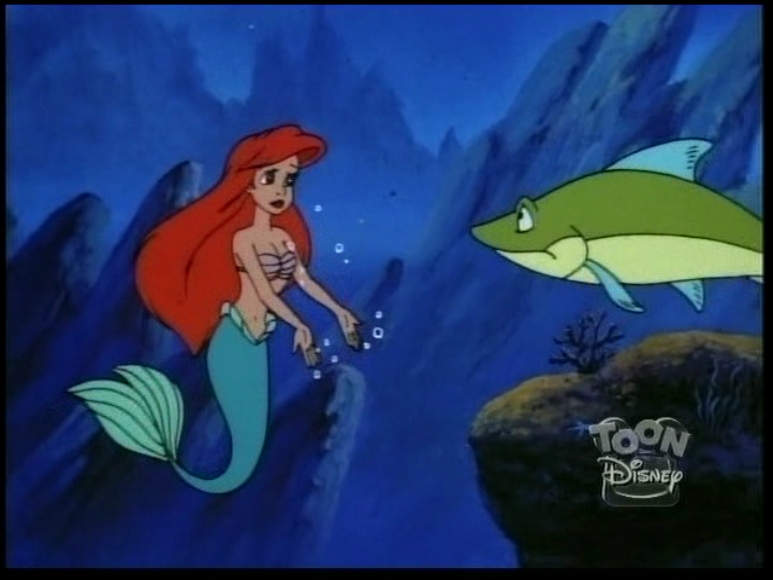 In this episode, A sorcerer blowfish's magic spell causes Ariel to create seaquakes whenever she laughs.