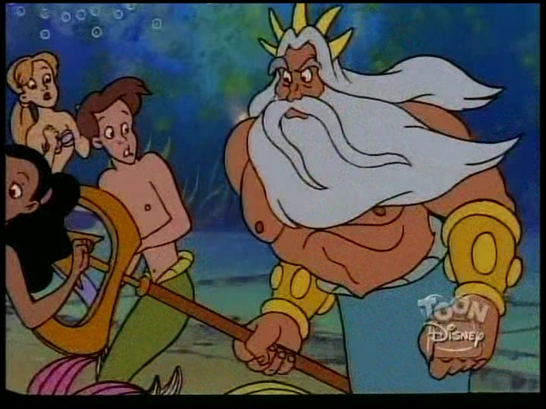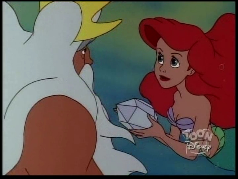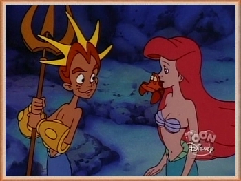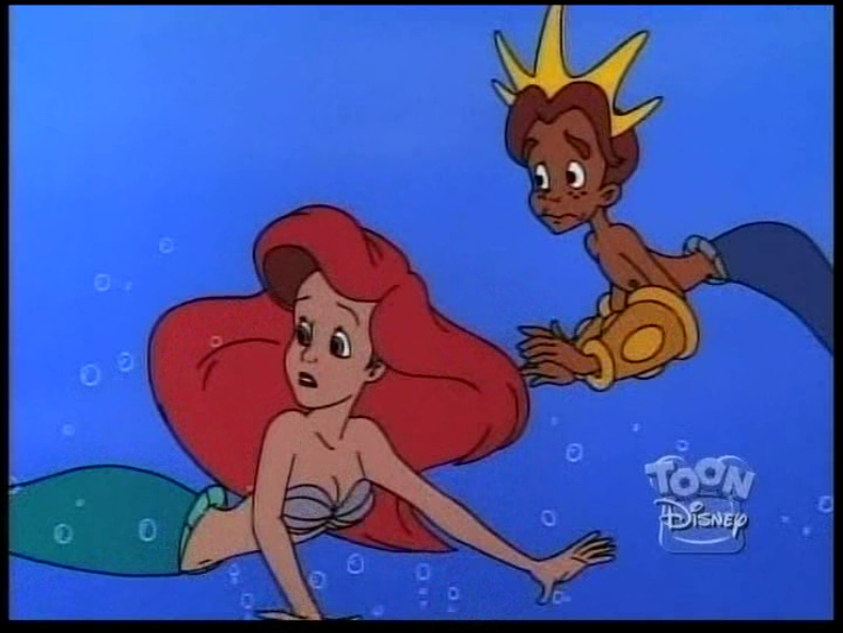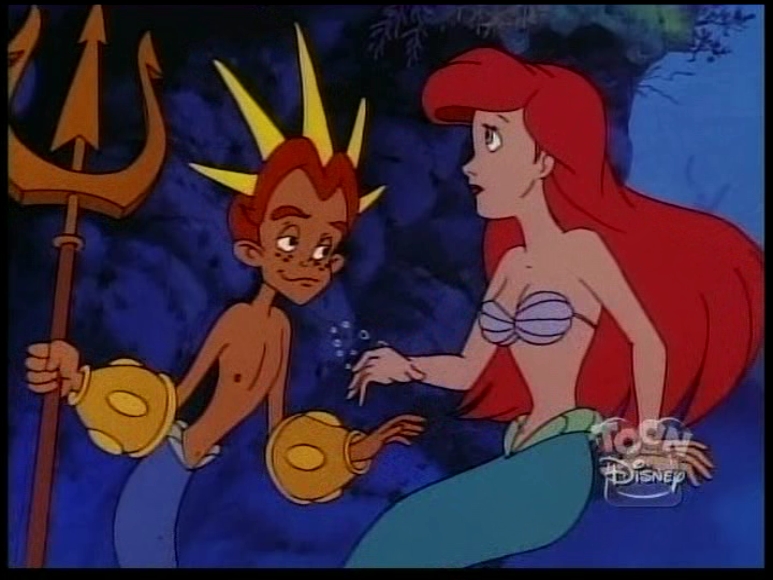 In this episode, a magic spell turns King Triton into a merboy, and Ariel has to play mother to him